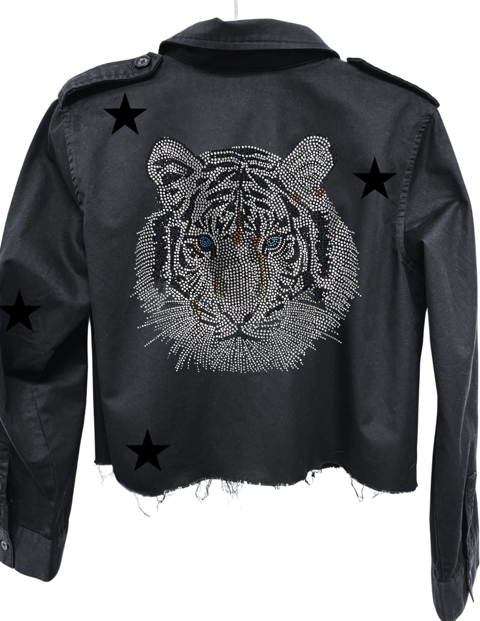 The Black Silver Tiger Shacket combines the warmth of a jacket with the comfort of a shirt, featuring a sleek black base highlighted by striking silver tiger patterns. Crafted for versatile wear, this shacket offers both style and functionality, making it ideal for layering in cooler weather. Its unique design ensures you stand out while staying comfortably protected from the chill. Perfect for those who value fashion-forward outerwear with expert craftsmanship.