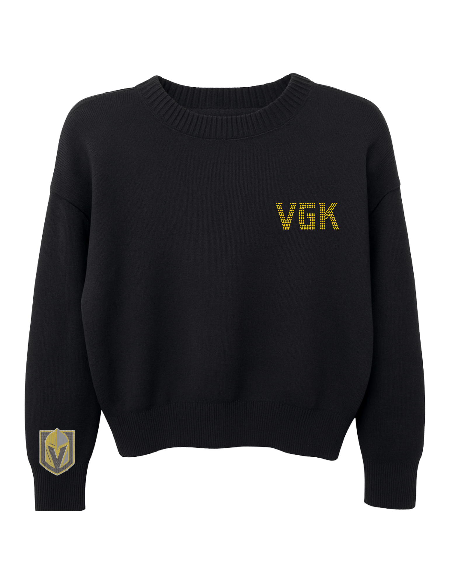 Show your team pride with this Licensed Game Day Sweater featuring a rhinestone logo for a stylish, eye-catching look. The crewneck design in black offers casual comfort while showcasing the Vegas Golden Knights emblems. Perfect for game days or everyday wear, this sweater combines quality and spirited detail to keep you warm and stylish.