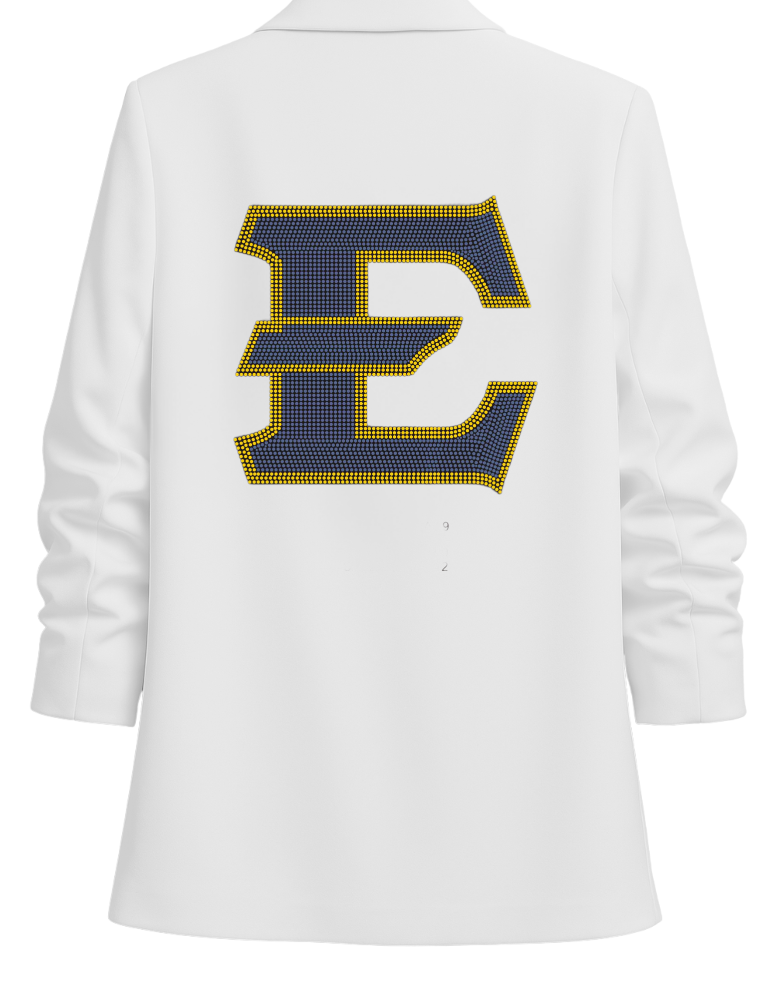 Elevate your game day attire with this officially licensed East Tennessee State University blazer in crisp white with sophisticated ruched detailing. Meticulously crafted to combine collegiate pride with professional elegance, this statement piece allows you to showcase your ETSU spirit while maintaining a polished appearance. Perfect for alumni events, homecoming celebrations, or any occasion requiring spirited sophistication.