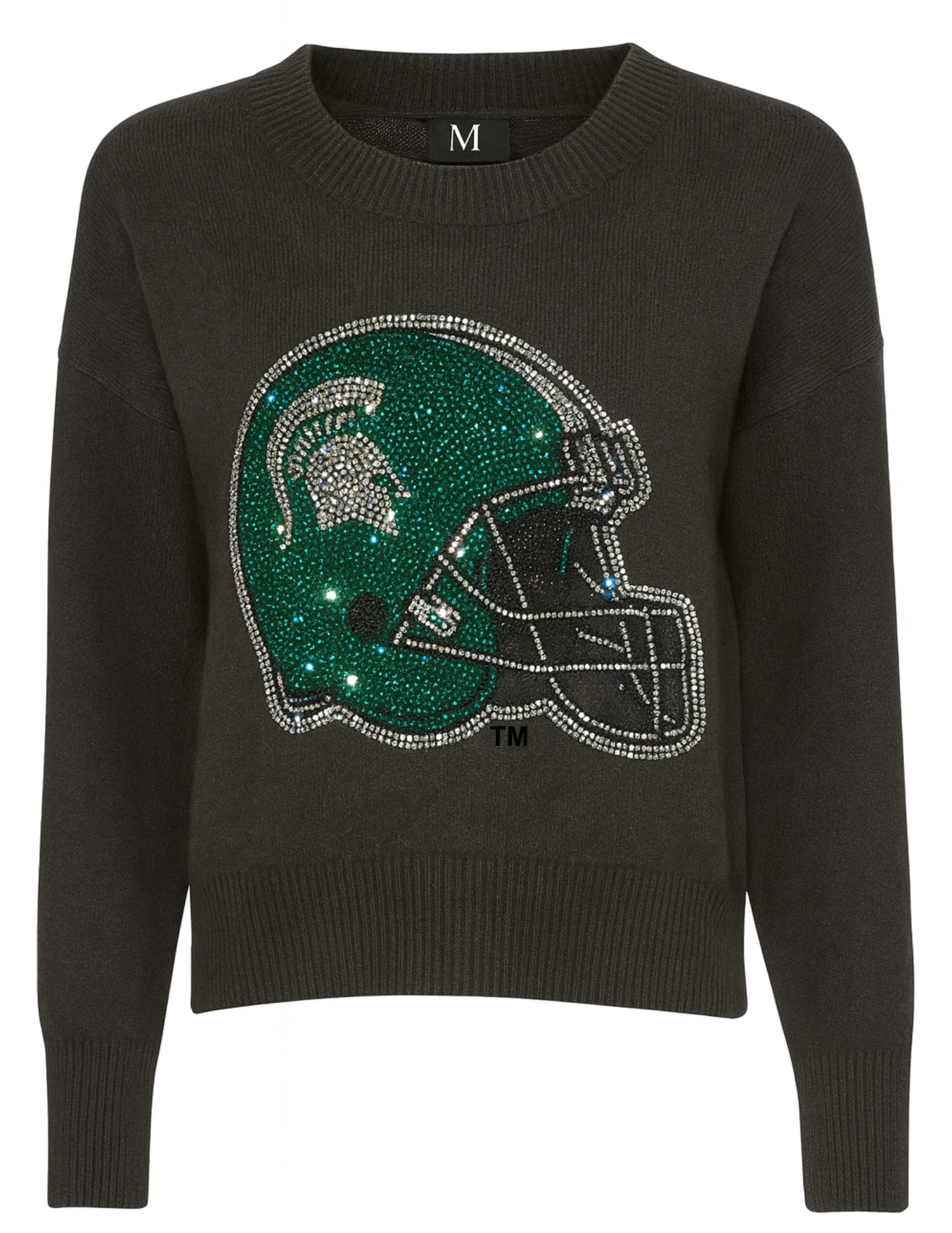 Licensed Game Day Sweater, Crewneck Black, Michigan State Helmet