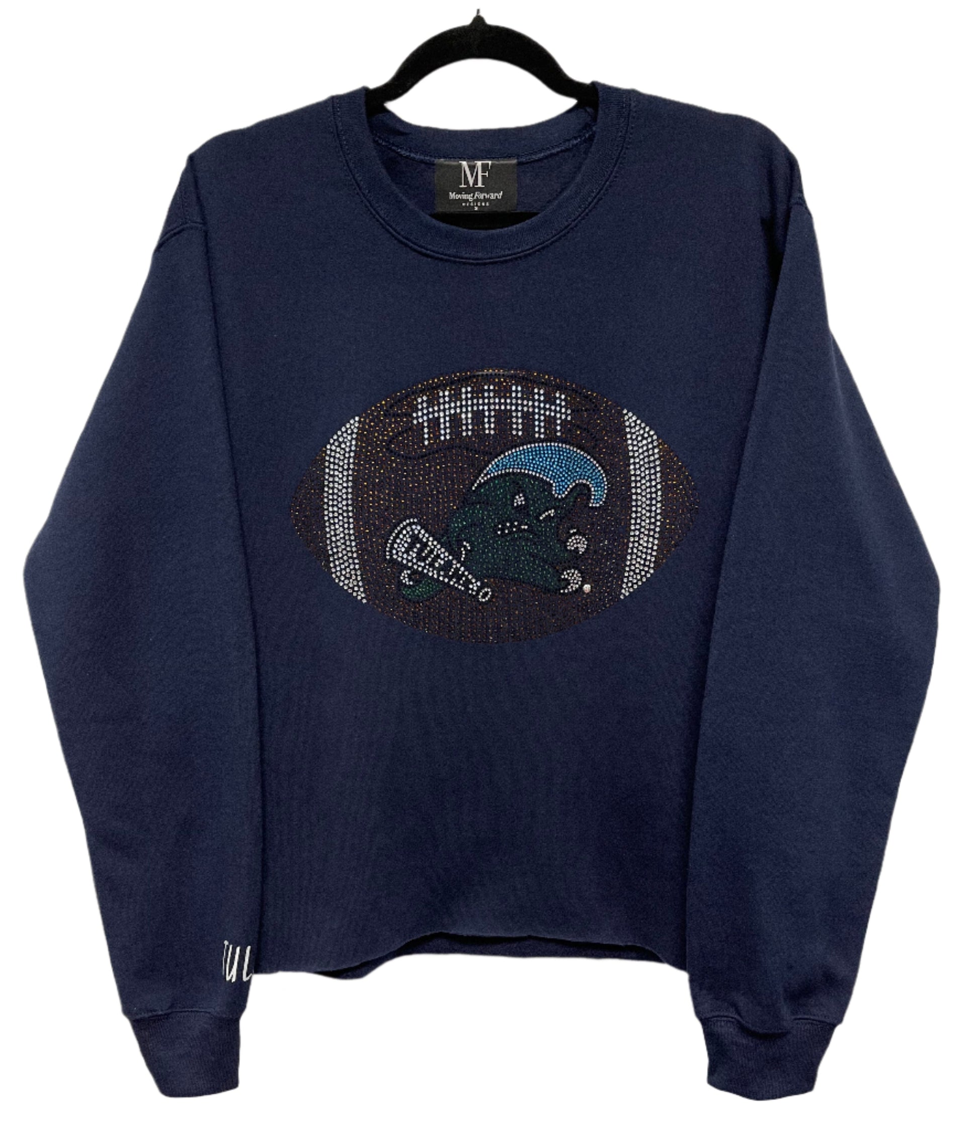 Show your Tulane football pride with this licensed navy crewneck sweatshirt, featuring a stylish wrist design crafted from sparkling rhinestones. Perfect for game day, it combines comfort with eye-catching detail, making it an expert choice for fans who want to stand out while supporting their team.